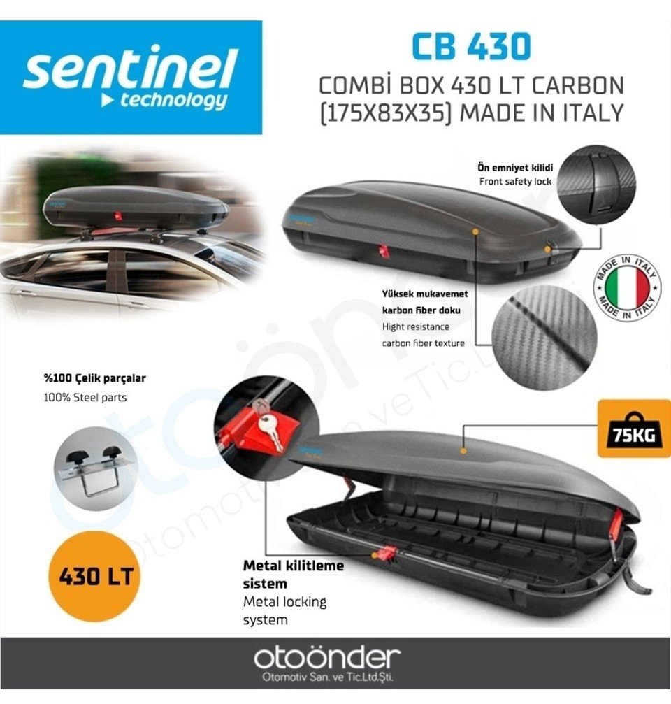 Sentinel 430 Lt litre araç üstü portbagaj aracınızda bulunan taşıyıcı ara barlar ile kusursuz şekilde uyum sağlar. Aerodinamik tasarımı sayesinde sorunsuz bir şekilde uzun süre araç üzerinde durabilir.